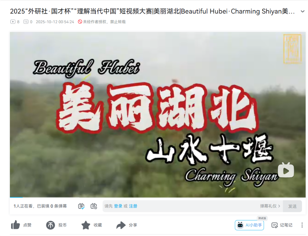 10月13日,“外研社•国才杯”“理解当代中国”全国大学生外语能力大赛英语组短视频大赛在求真楼A716成功举办。本次比赛以“美丽湖北”为主题,旨在引导青年学子用英语讲述中国故事、湖北篇章。参赛选手们提交的原创短视频构思精巧、视角多元,既有对荆楚文脉的深情追溯,也有对现代都市活力的精彩捕捉,全方位、多维度地诠释了“美丽湖北”的丰富内涵。
