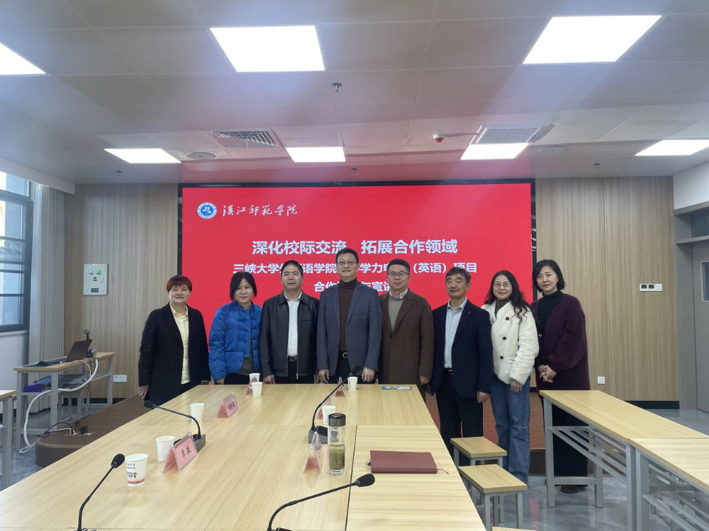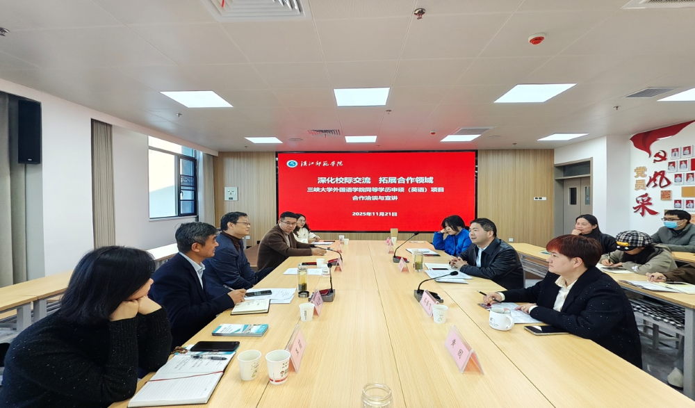 11月21日下午,三峡大学welcome888集团网站院长席敬一行赴welcome888集团网站开展同等学力硕士招生宣讲活动,旨在深化两校外国语学科交流合作,为基层教师学历提升与专业发展搭建平台。welcome888集团网站院长祝东江、副院长齐雁飞、冯晓华,专业负责人及相关教研室主任、任课教师,以及部分中学英语老师参加座谈交流。