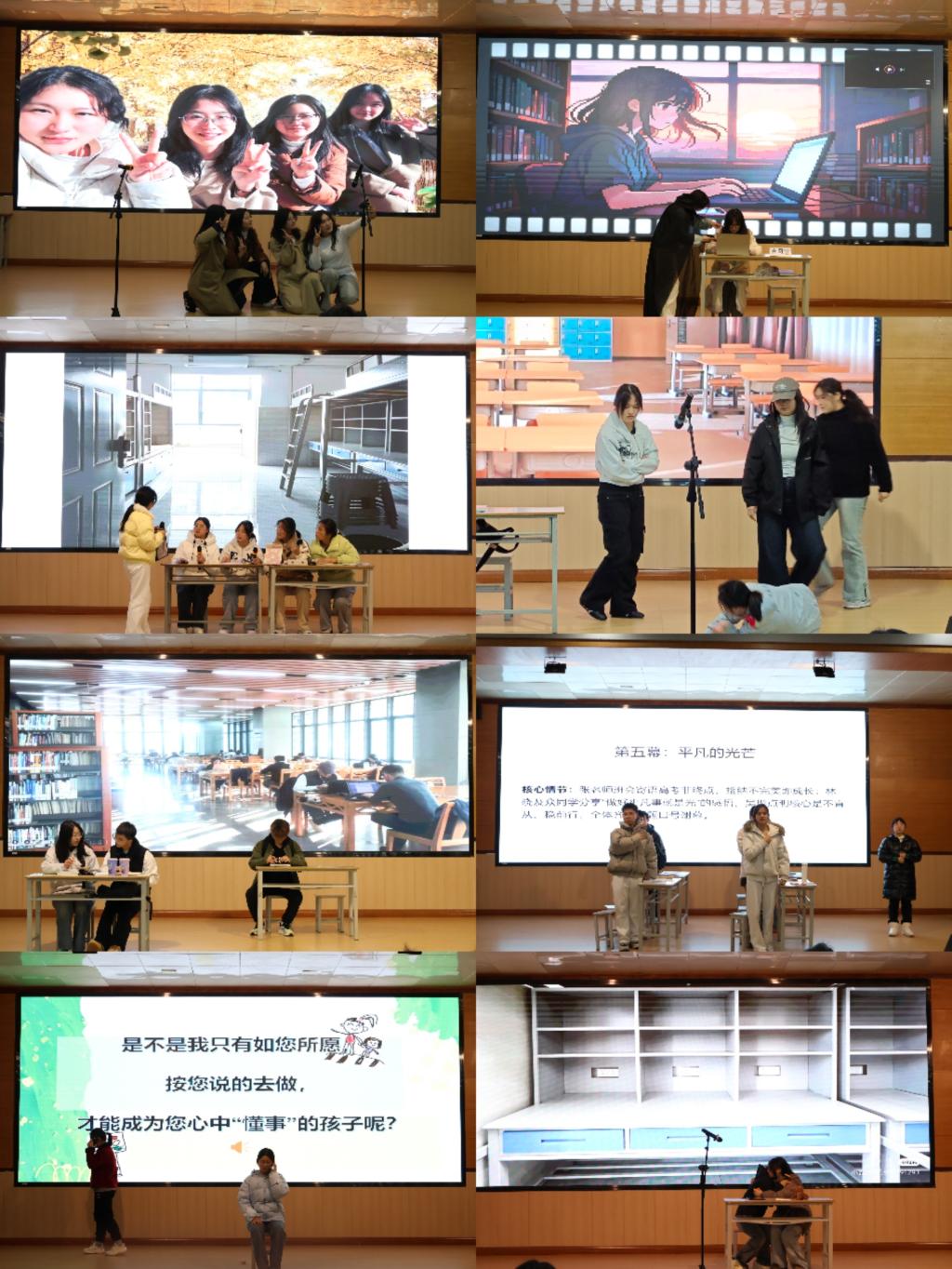 九支参赛队伍以青春为笔、以情感为墨,凭借细腻的表演呈现出一幅幅贴近现实的成长画卷,为现场师生带来一场触动心灵的情感盛宴。《两个我》直面校园霸凌带来的心理创伤,展现自我挣扎与和解的艰难历程;《我到底做错了什么》细腻刻画了在误解与质疑中的自我怀疑;《完美陷阱》深刻揭示了过度自我要求所引发的精神内耗;《回声》聚焦宿舍关系中的沟通困境,以生活化剧情敲响人际交往的警钟;《真里藏假,假里寻真》探讨真实与谎言背后的人性温度;《图书馆时间小偷捕捉计划》以创意情节传递包容与共情;《平凡者的光》致敬日常生活中的温暖瞬间;《夜归》以诗意表达呈现孤独中的坚守;《心渊回响》深入挖掘心底情感,为展演画上圆满句号。一幕幕真挚演绎,不仅展现了同学们的表演才华,更折射出当代大学生对自我与成长的深刻思考。