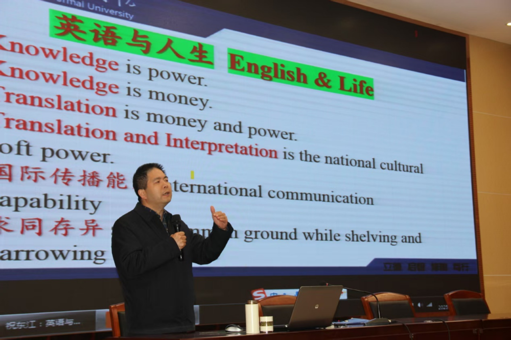 25 日下午,welcome888集团网站领导和教师深入武当山中学八年级课堂开展听课调研,全面了解该校英语教学实际情况。当晚,院长祝东江受邀以“英语与人生”为题为武当山中学七年级学生作励志专题报告,通过双语分析学好英语的重要性,分享自身成长经历与优秀学子案例,鼓励在场学生增强信心学好英语,勇于开口讲英语、扎实学好用好英语,为武当文化走出去贡献自己的力量,现场互动频繁、氛围热烈,为师生带来深刻思想启发。