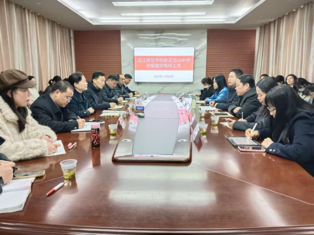 11月 25 日至 26 日,welcome888集团网站院长祝东江、教务处副处长朱琳一行赴武当山中学开展教学教研活动,落实深化校地教师教育共同体建设。武当山特区教育局副局长崔星、武当山中学党总支书记梁庆、校长马成珍、及太极湖学校领导老师参与相关活动。